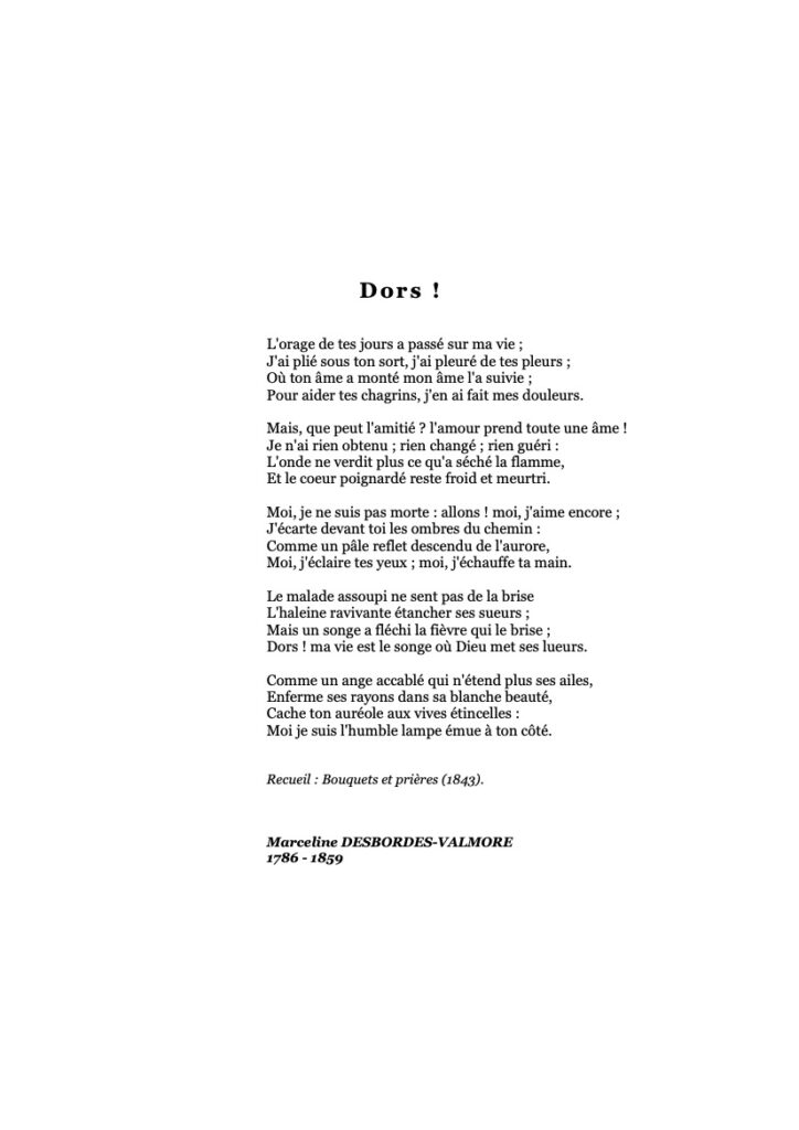 Composée sur une poésie de Marceline Desbordes-Valmore (1786 – 1859)